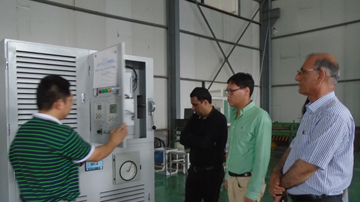 國外友人來我公司考察,公司領(lǐng)導(dǎo)及市場部人員陪同客戶參觀了公司車間,并詳細講解了公司生產(chǎn)的七電平中壓變頻裝置、油井動態(tài)節(jié)能裝置等產(chǎn)品的生產(chǎn)工藝流程……